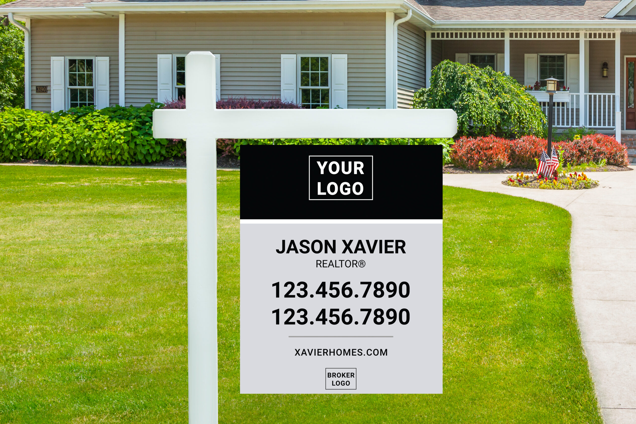 Capture prospective buyers’ attention with these full-size yard signs. These 24″×30″ double sided signs are completely customizable and printed in full-color on 3mil Alumibond. Order one for every listing and keep a few spare signs in your trunk. Two holes are drilled 16″ apart on the top and they are designed to be used with a post as shown. The posts are sold separately and we recommend these.