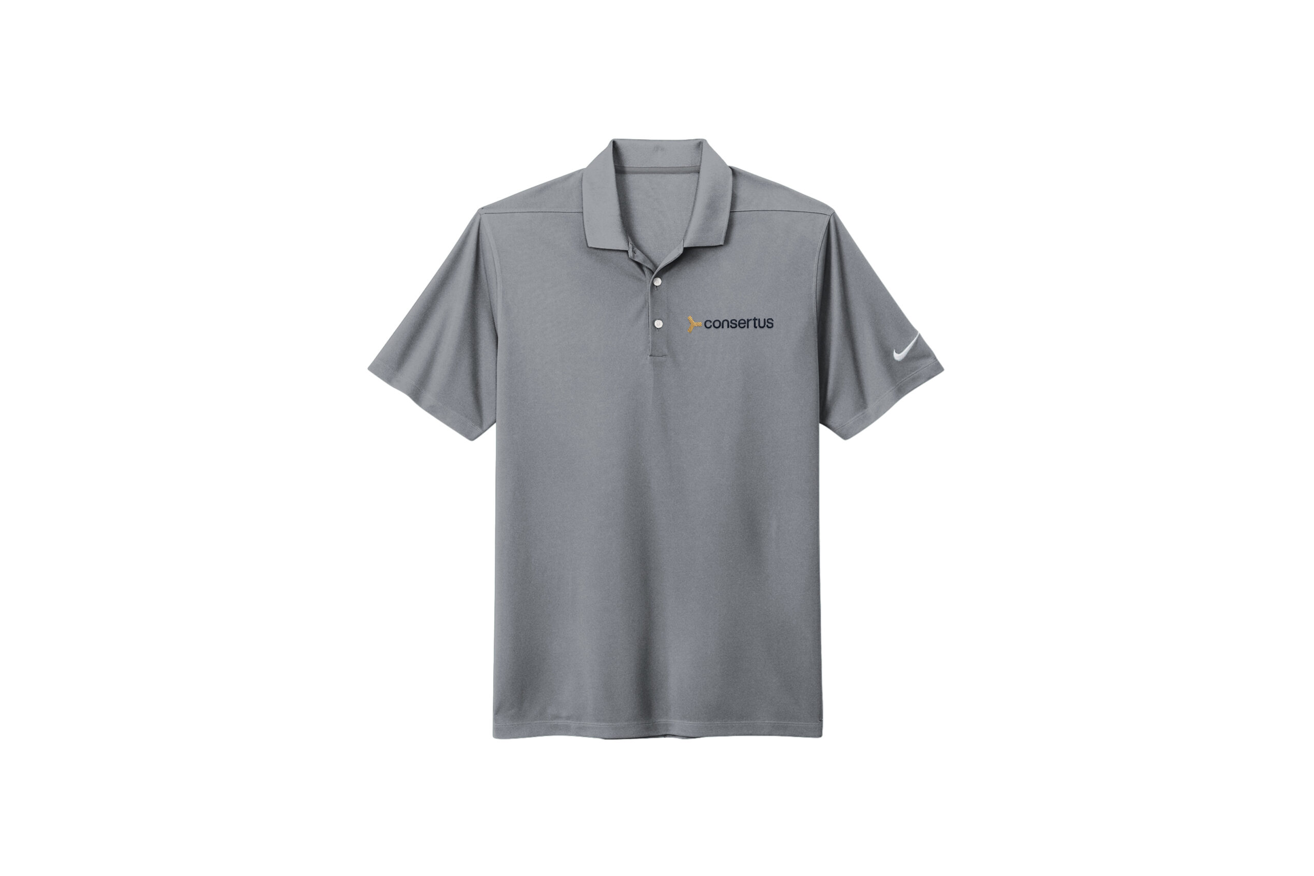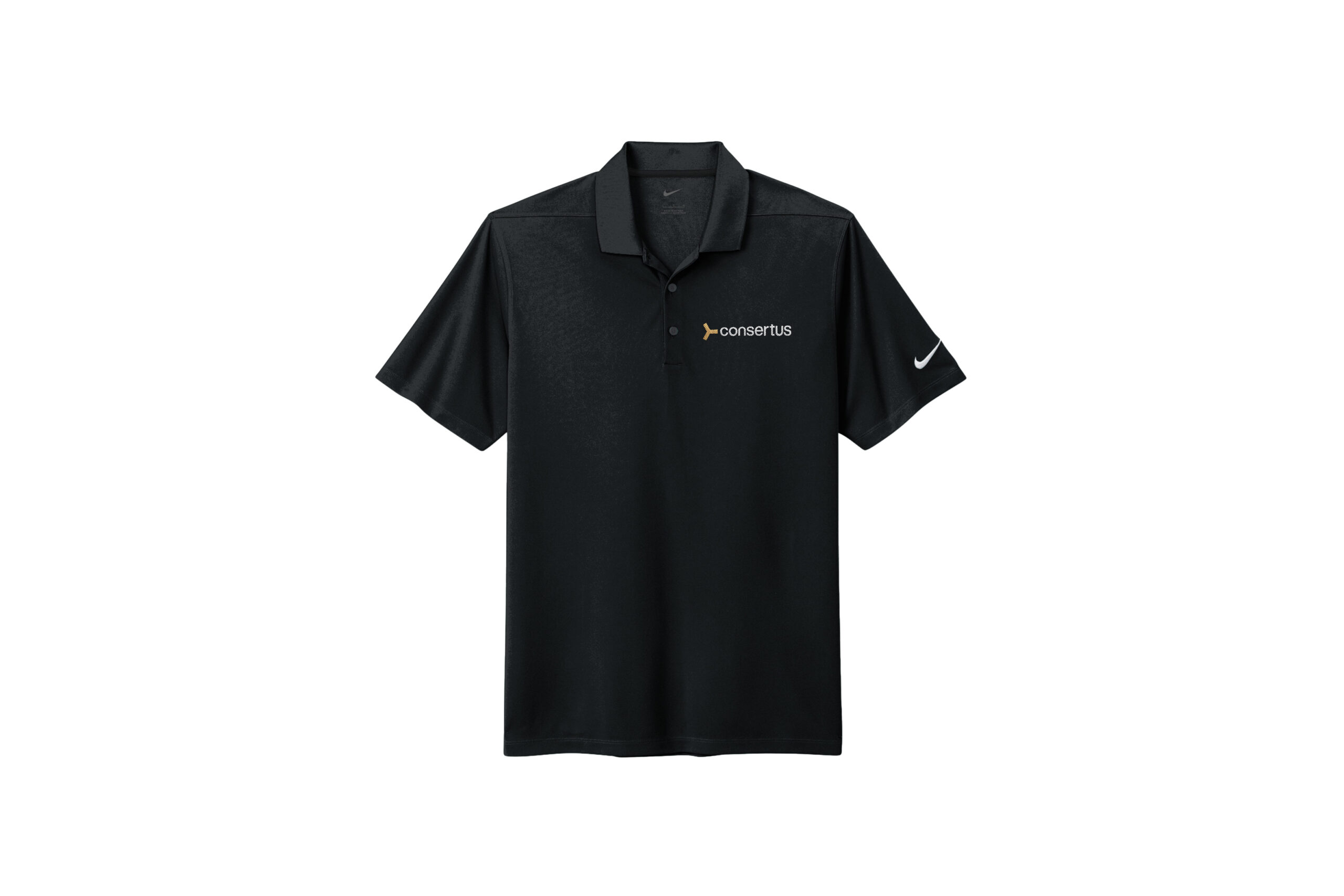 The ability to stay cool when things heat up. Engineered with Dri-FIT fabric, which provides moisture management technology. This comfortable micro pique polo has an exceptionally soft hand. The design features a flat knit collar, three-button placket, and open hem sleeves. The contrast Swoosh design trademark is embroidered on the left sleeve, the Consertus logo is on the left chest.